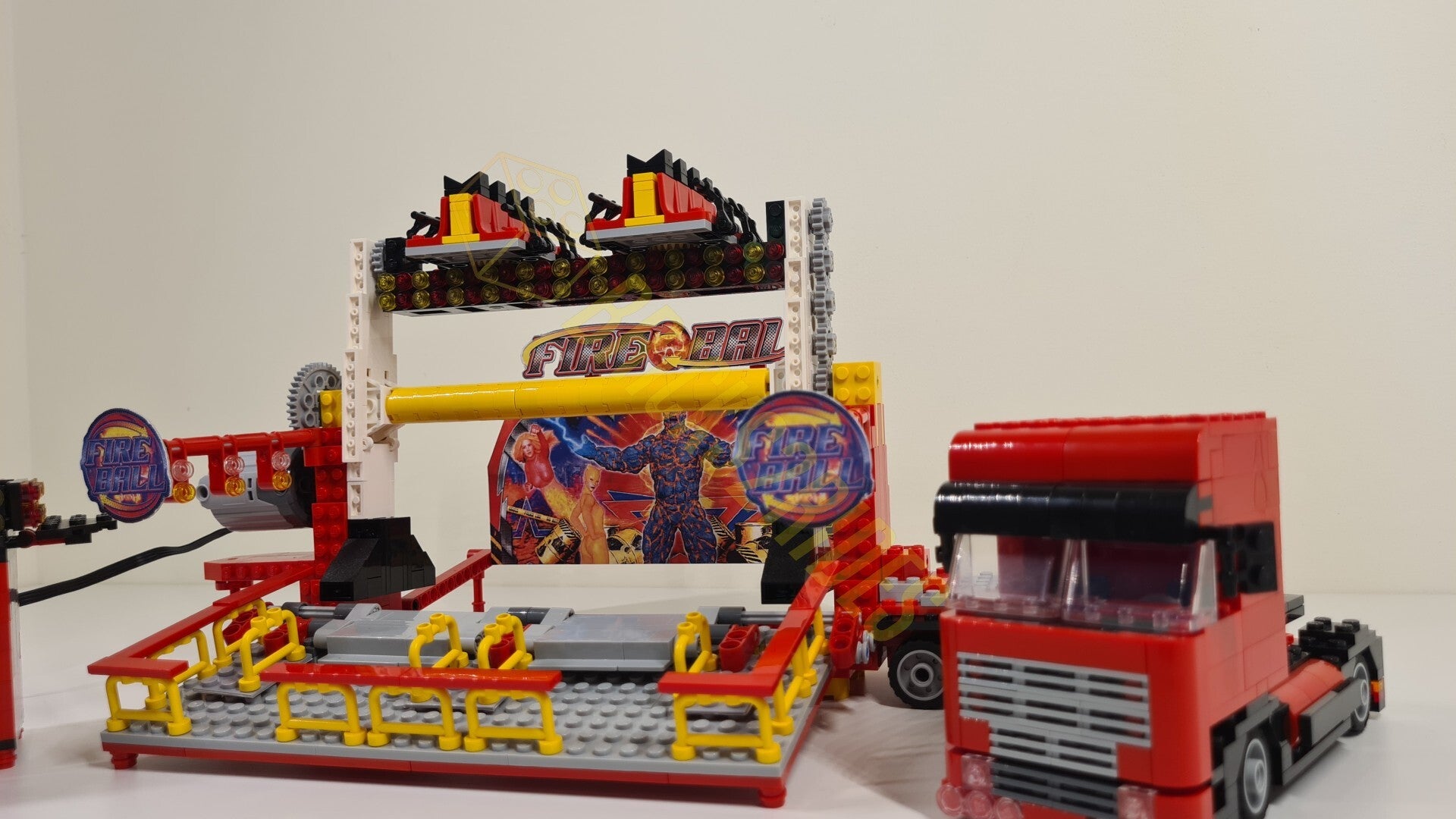 Representation of the fairground attraction 'Surf Ride' by KMG, made with LEGO® blocks.
